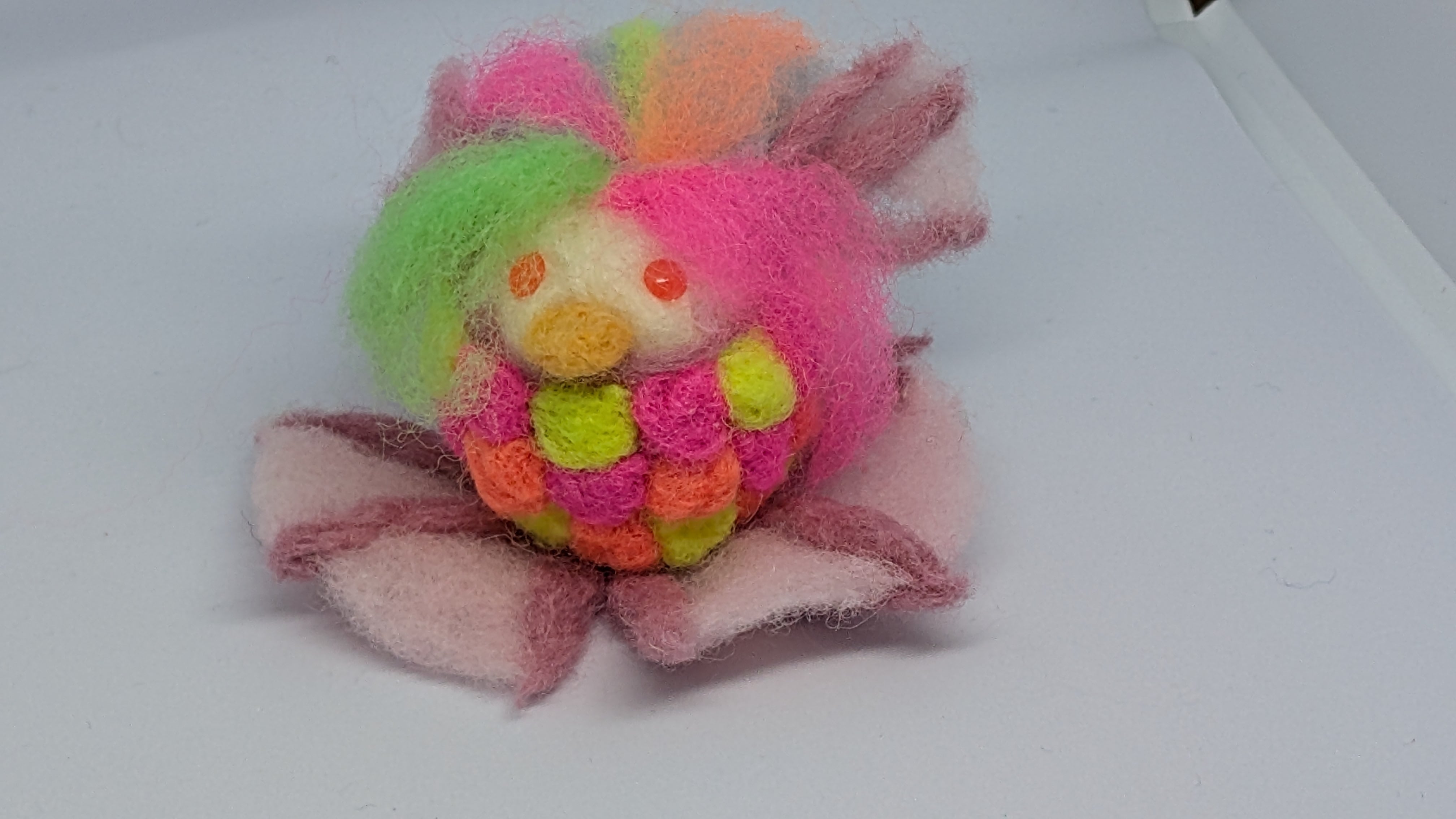 蛍光羊毛を使用しており、ブラックライトに当てれば光ります!テーブルの上の癒しにいかがですか?